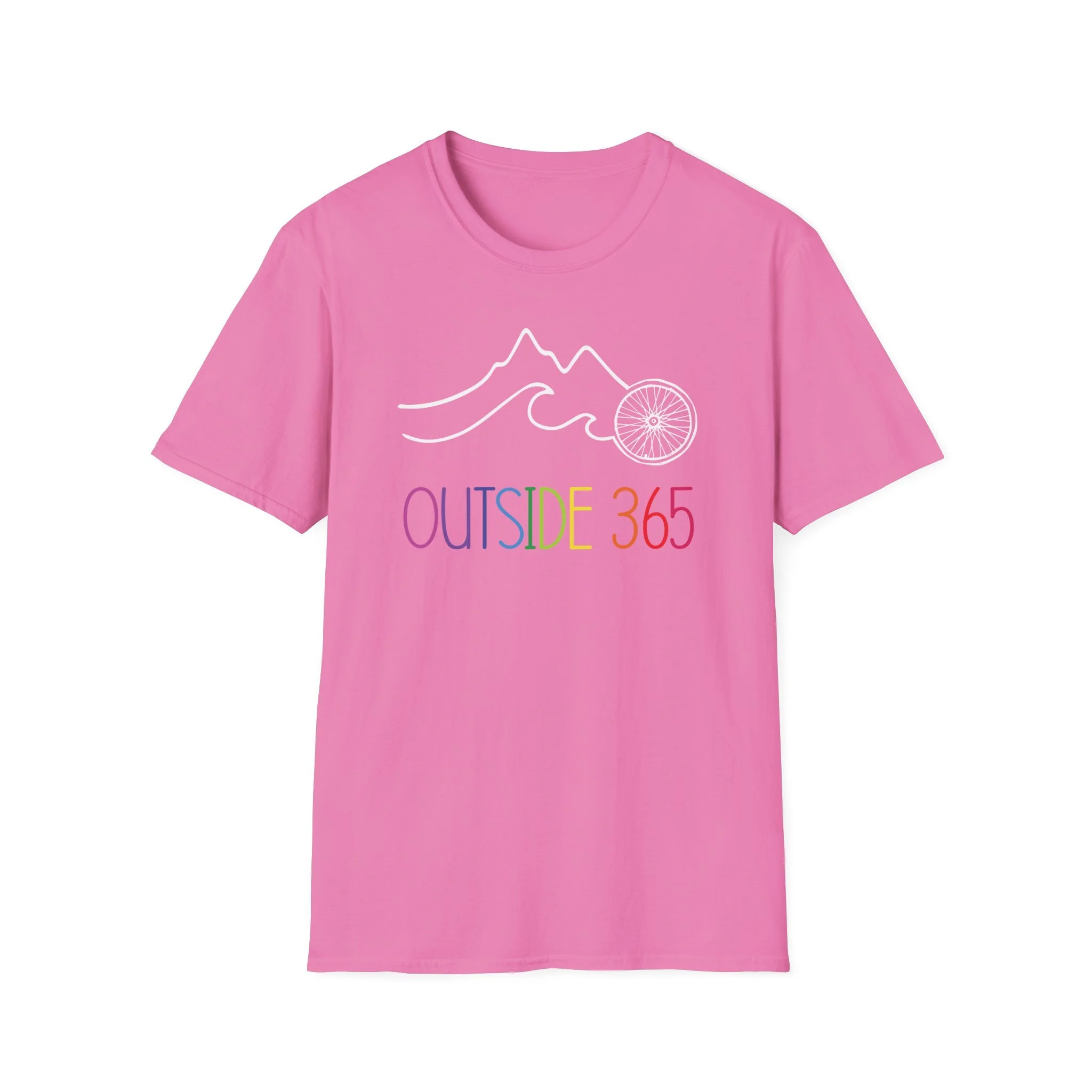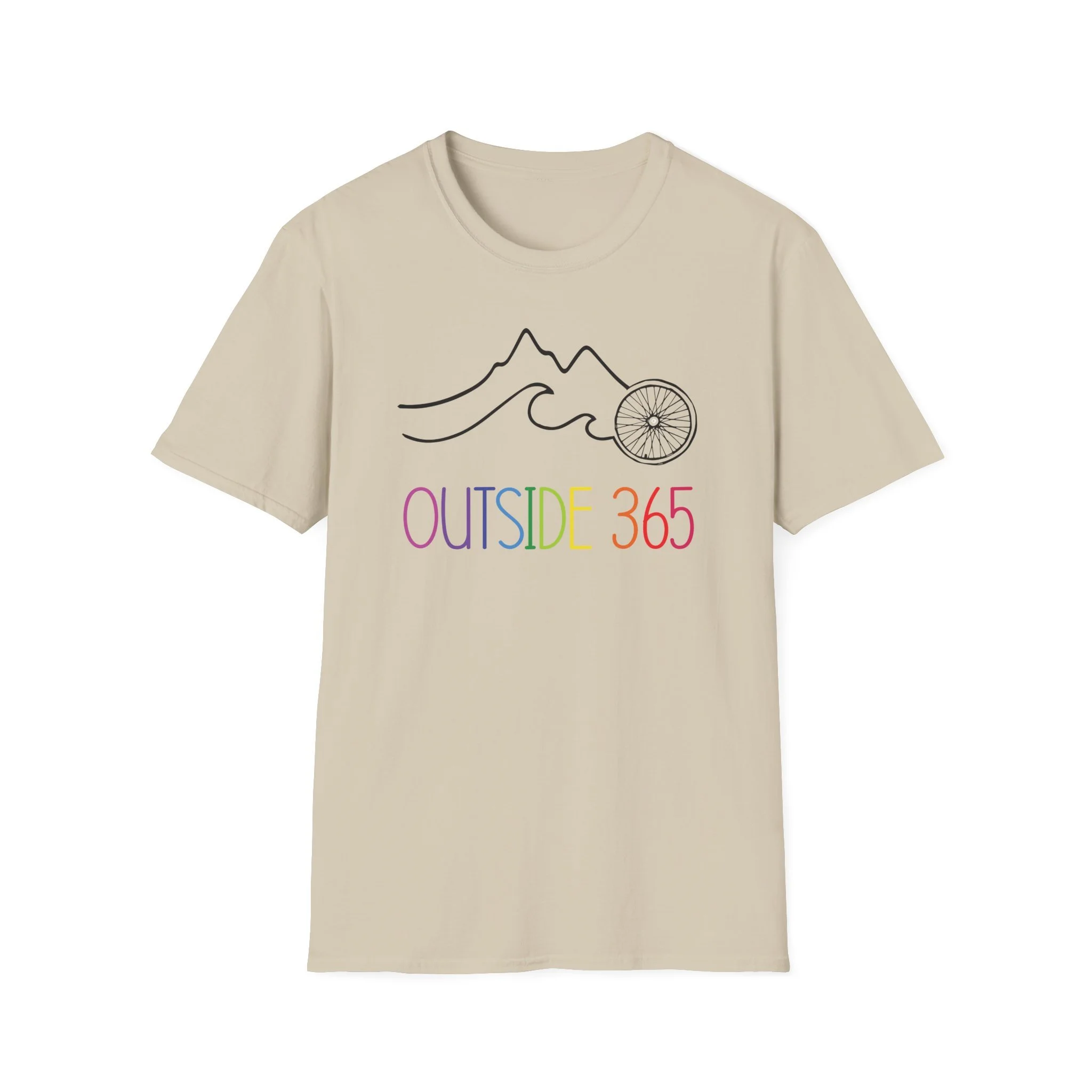A lightweight, everyday tee for people who live for trails, pedals and wide-open horizons. Soft ring-spun cotton drapes easy whether you’re heading out for a sunrise ride or lounging at home planning the next route. The minimalist line-art mountains and bike wheel sit above a subtle, rainbow-gradient “OUTSIDE 365” — a quiet shout for those who choose fresh air all year. It wears like a familiar favorite: breathable, smooth, and ready to move with you on short runs, long rides, or weekend getaways.